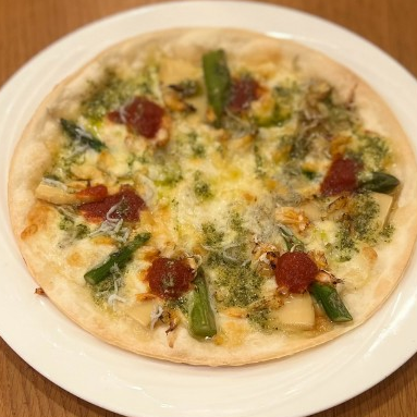 【桜エビと釜揚げしらすのピザ~ジェノバ風~】